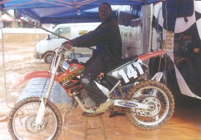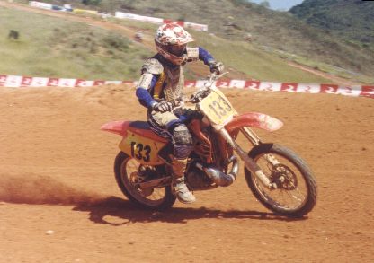 James "Buiú" Stewart checando a posição de pilotagem da Honda do Roger.